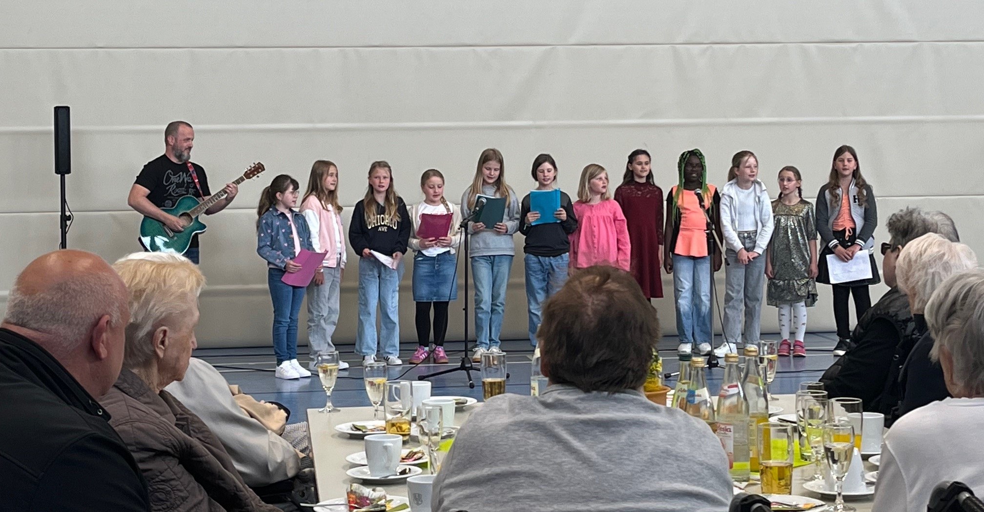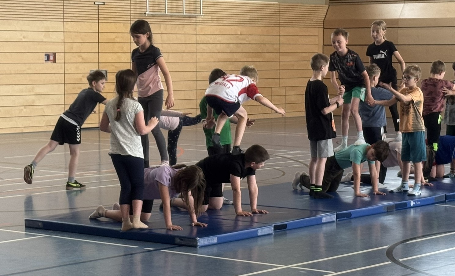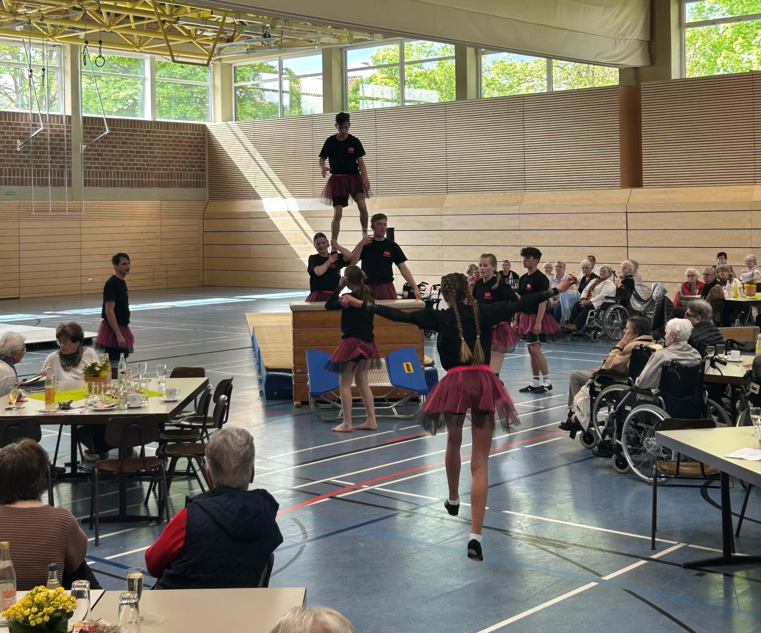 Das kulturelle Programm wurde durch einen stimmungsvollen Auftritt des Schulchors der Grund- und Mittelschule eröffnet. Unter Leitung von Lehrer Johannes Sand sangen die Schülerinnen und Schüler zwei fröhliche Frühlingslieder. Im Anschluss beeindruckte die Klasse 3a mit Lehrerin Janine Simmel durch eine akrobatische Menschenpyramide und erntete begeisterten Applaus. Für Bewegung sorgte Stephan Lischewski, Leiter der ARV-Tagespflege, der mit seinem Mitmachprogramm zu „Himmel und Hölle“ für Schwung und gute Laune sorgte.